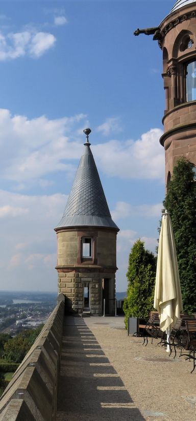 Posttower, Platz zwischen den Museen/Kunst- u. Ausstellungshalle, Kirschblüten in der Breitestraße (unten). Schloß Drachenburg, Siebengebirge (ganz unten).